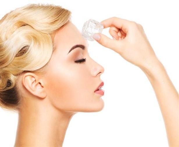 Yüz masajında buz küpleri dolaşımı artırarak cildinizi parlatır.