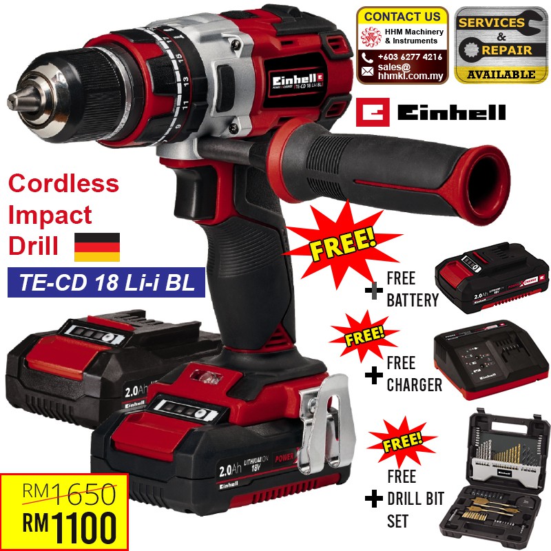 Einhell Cordless Impact Drill Te Cd 18 Li I Bl Including 2 Pcs 2 Ah Battery Charger And 1 Pcs Drill Bit Set Shopee Malaysia